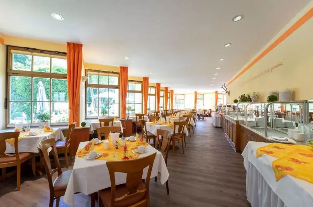 Das Hotel Goldener Hirsch liegt An der Hasel 91 in Suhl, Deutschland. Es bietet kostenlose Parkplätze sowie freies WLAN in allen Zimmern. Die Unterkunft ist innerhalb von zehn Minuten zu Fuß vom Bahnhof Suhl und unter fünf Minuten von der Autobahn A73 entfernt. Für Elektroauto-Fahrer steht eine Ladestation zur Verfügung. Das Hotel umfasst drei Gebäude: das 407 Jahre alte Hauptgebäude, das moderne Gästehaus und das 'Alte Mühlen', das 2018 saniert wurde. Jedes Zimmer verfügt über Kabelfernsehen, einen Schreibtisch und ein eigenes Bad. Im Gästehaus kann man alle Etagen mit einer Aufzug nutzen. Die Räume im Hauptgebäude und im 'Alten Mühlen' sind jedoch nur per Treppe zugänglich. Das Frühstück wird im Wintergarten serviert, wo man einen Blick auf den Freizeitpark hat. Im Restaurant und während der Sommersaison im Biergarten können regional sowie international kreative Gerichte probiert werden. Besonders empfehlenswert sind die hausgemachten Thüringer Knödel. Mit seiner ruhigen Lage außerhalb des Stadtzentrums eignet sich das Hotel hervorragend für Wanderer, Wintersportler und Motorradfahrer, die ihren Ausflügen ins Thüringer Wald starten möchten. Der nahegelegene Freizeitpark und ein Spielplatz bieten Erholungsmöglichkeiten für Familien und Kinder. Haustiere sind herzlich willkommen.